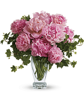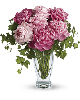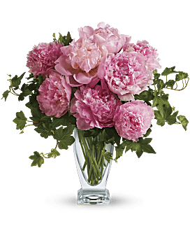 Freshly cut pink peonies and classic green ivy are gathered elegantly into Teleflora's Couture glass vase.